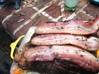 Now, as we have 6 pounds of this meat, it is going to take a fair amount of time to cook. This is a half day event. Using a meat thermometer you want to check the inner temp of the meat - 140 is medium rare, 150 is medium and so on. I like my meat at rare to medium rare.